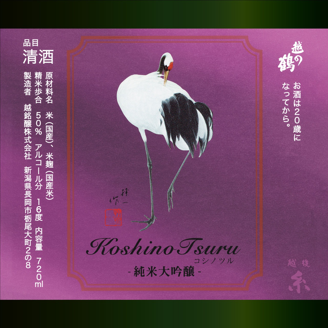 越乃ラベルハンカチ 越の鶴 大吟醸 越銘醸 越後糸 日本製